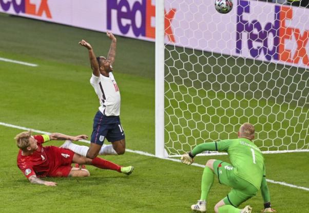 北京时间7月8日凌晨3点,2020欧洲杯第二场半决赛在英国伦敦的温布利球场进行,英格兰队主场迎战丹麦队。上半场,达姆斯高利用任意球机会打进世界波,英格兰队在欧洲杯上首次丢球;随后萨卡的传球导致克亚尔自摆乌龙。下半场双方都没有再进球,加时赛中,斯特林突破制造点球,凯恩主罚被舒梅切尔扑出,随后他补射命中。最终,英格兰队2-1淘汰丹麦队,历史上首次打进欧洲杯决赛,他们将和意大利队争夺冠军。