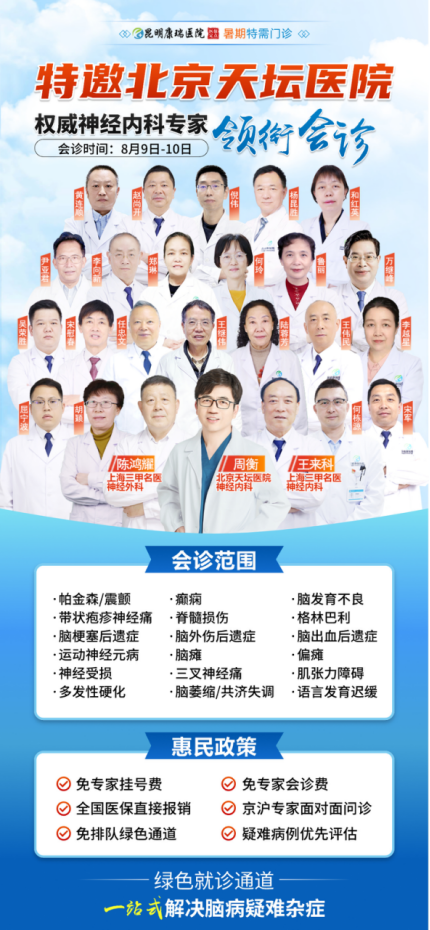 这个夏天,不必远行,京沪云专家团在昆明康瑞医院等您,共筑健康防线,开启神经疾病精准诊疗新篇章,为您的健康保驾护航。